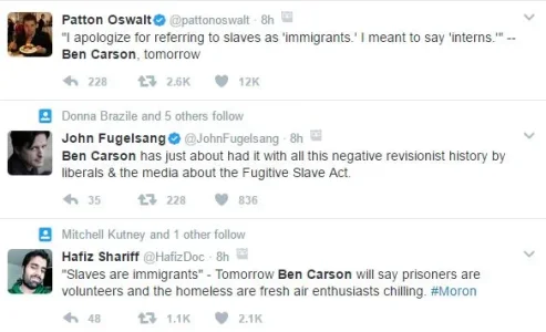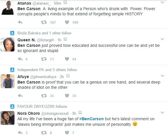 Carson's remark sparked outrage on Twitter. See some tweets: