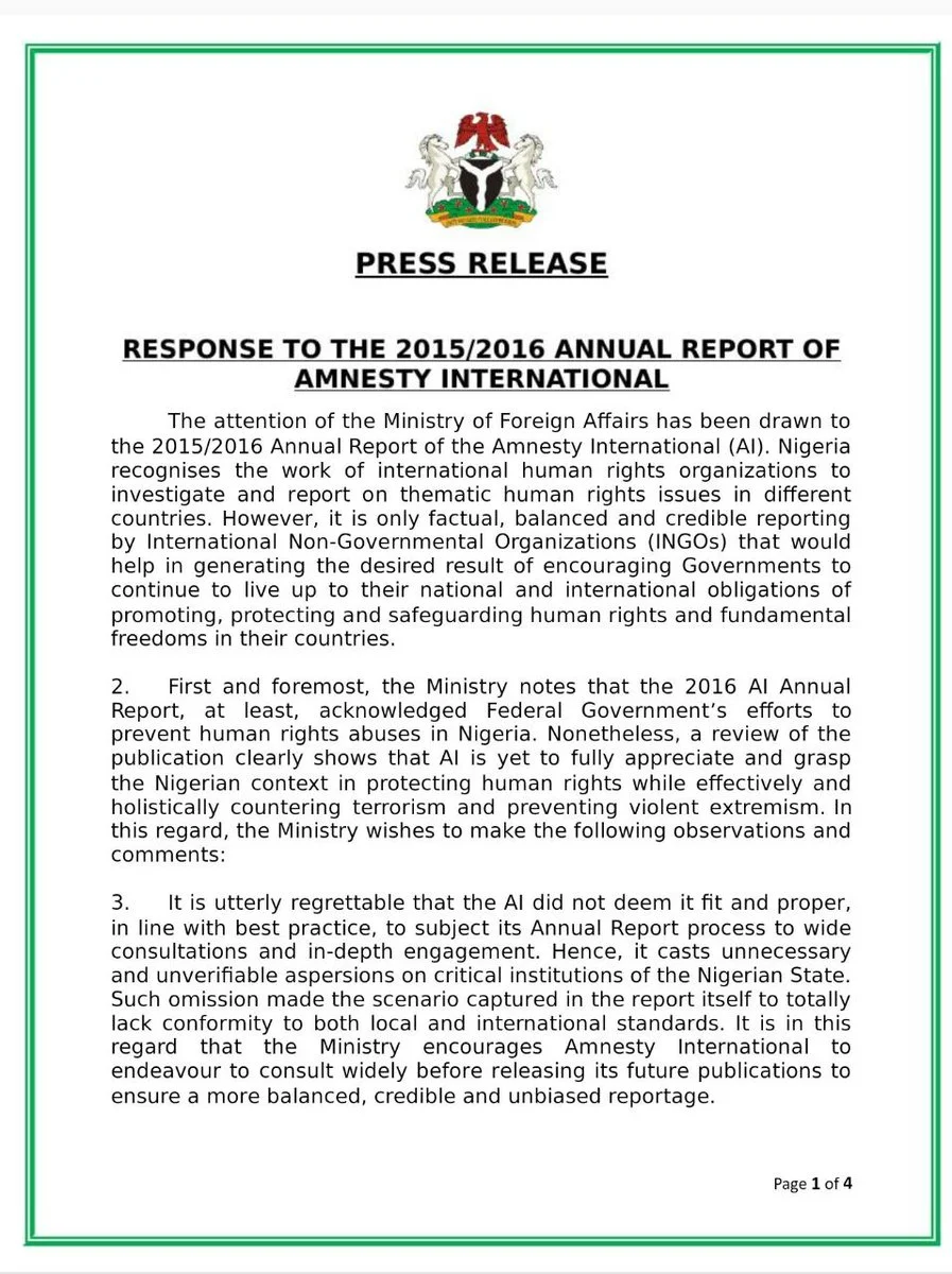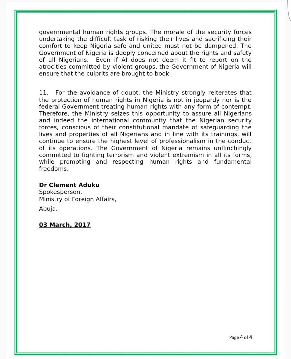 See the Nigerian government's statement as released by the foreign ministry below: